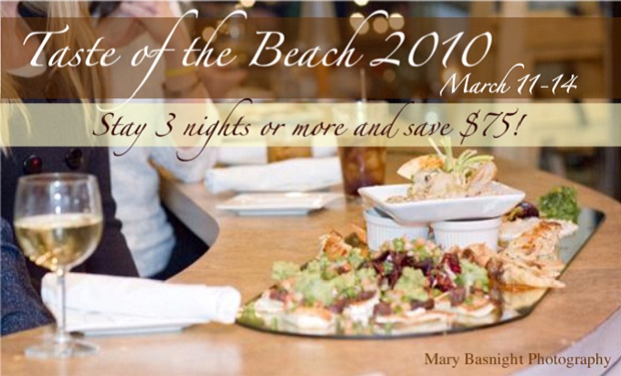 Kill Devil Hills, NC February 19, 2010 -- The Outer Banks Taste of the Beach will take place March 11-14, 2010. Named one of Coastal Living Magazine's Top 10 Seafood and Wine Festivals, this 4-day event includes gourmet fare, micro brews, wine tastings, tapas crawls, cooking classes, champagne brunches and so much more. The annual event attracts visitors from across the region and grows in popularity each year.