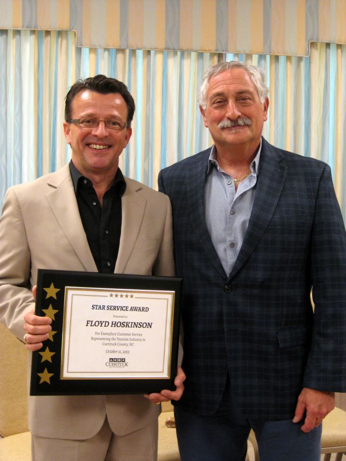 Corolla, NC -Sun Realty recently celebrated a notable achievement in customer service by Floyd Hoskinson. Floyd was recognized for his outstanding customer service to visitors of The Currituck Outer Banks. The award was presented by Lynn Minges, former Assistant Sec. for Tourism, Marketing & Global Branding, at the Annual Currituck Chamber of Commerce Meeting.