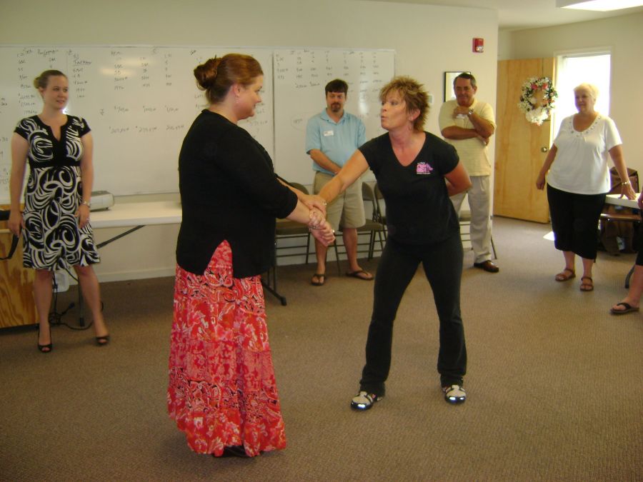 During the 2 hour seminar, Kym taught members of the Sun Realty staff several defense moves, including “Baby Don’t Leave” and “Talk to the Hand”. The catchy names of these defense moves are not to discredit or make a light of, but for individuals to remember easily. She also gave some great tips on getting into the car safely and what to teach children if they are approached by a potential abductor.