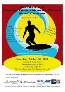 The Third Annual Throw Down North of Town OBX surf competition will be held Saturday, October 8th, 2011. This annual surf competition benefits the local community.