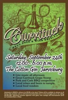 The Currituck Fall Food and Wine Festival will be held Saturday, September 24, from noon to 6 p.m. at Sanctuary Vineyards in Jarvisburg, NC.
