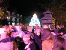 The Town of Manteo celebrated Christmas at First Friday in true Elizabethan style. Every first Friday of the month by the waterfront in Manteo, locals and vacationers gather to socialize and enjoy the family friendly atmosphere. This year was no different. The night began with a large bonfire in the street. The bonfire kept everyone warm! Free Hot chocolate and hot cider was given out to help combat the chilly tempartures.